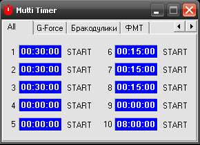 (метки: ) 10 независимых таймеров отслеживается в программе, обратный отсчет к нулю или к максимуму в 100 часов с точностью до 1 секунды. Программа удобна, когда вы, например, готовите чай и не хотите забыть об этом важном событии и хотите, чтобы вас оповестили о готовности чая, тогда вы устанавливаете таймер на 5 минут, и через 5 минут на вашем мониторе покажется сообщение: "Tea is ready" - чай готов. Все таймеры могут просматриваться в последовательности один за одним или все одновременно, установленные параменты запоминаются. Выборочно настраиваются звуковые сигналы оповещения и окно сообщения с определенным пользователем извещением, которое не может быть спрятано другими окнами. Программа может размещаться в трее. Если таймер установлен в режим обратного отсчета "count down", то появится окно извещения о наступившем событии (окно тревоги, будильника, alarm), когда таймер достигнет отметки ноль. Звуковой сигнал оповещения будет проигрываться до тех пор, пока не будет закрыто окно сообщения. Для каждого таймера назначается индивидуальная текстовая строка в качестве идентификатора для лучшего запоминания назначения таймера. Программа бесплатная, интерфейс на английском языке, скачать тут.